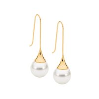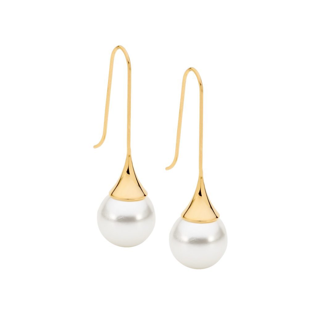 Ellani Stainless Steel Long Drop w/Shell Pearl Earrings YG