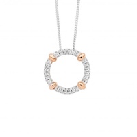 Ellani Sterling silver circle pendant with cubic zirconias and rose gold plating