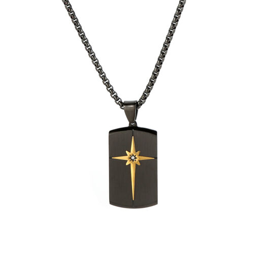 Black and Yellow Gold IP Plated Stainless Steel Chain with Brushed Northern Star & Zircon Tag Necklace