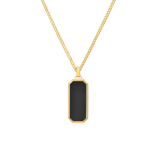 Indulge Yellow Gold Plated Stainless Steel Curb Link Chain Necklace with Black Onyx Tag Pendant