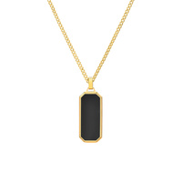 Yellow Gold Plated Stainless Steel Curb Link Chain Necklace with Black Onyx Tag Pendant