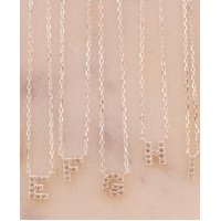 Sterling silver CZ mini initial pendant necklace - E
