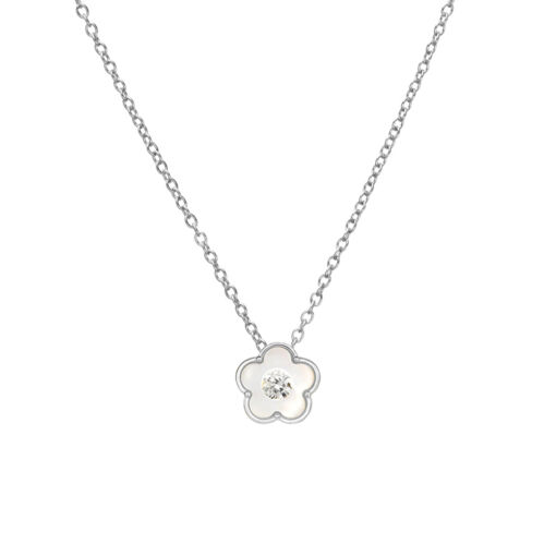 Indulge Sterling Silver Flower MOP Floating CZ Pendant Necklace