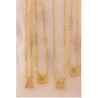 Sterling silver gold plated CZ mini initial pendant necklace - M