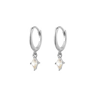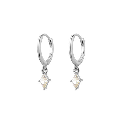 925 Sterling silver huggie earrings with drop diamond-shape CZ