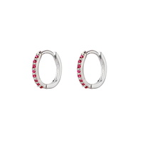 Sterling Silver Huggie Earrings with Ruby Pink CZ detail