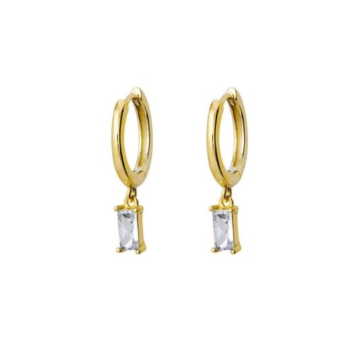 Indulge Yellow Gold Sterling silver white CZ baguette hoop earrings