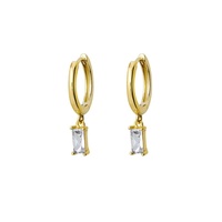 Yellow Gold Sterling silver white CZ baguette hoop earrings