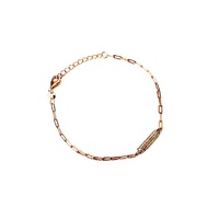ROSE GOLD PLATED S/SLV STERLING SILVER PAVE CZ BAR AND PAPERCLIP LINK BRACELET