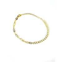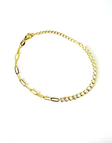 YELLOW GOLD PLATED S/SIL HALF CZ HALF PAPERCLIP LINK BRACELET