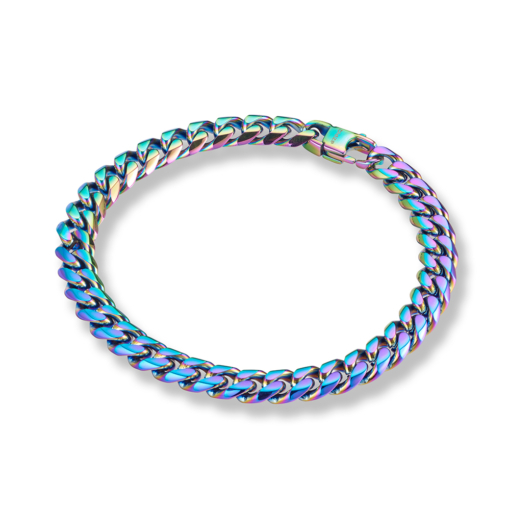 Stainless Steel men’s shiny rainbow finish cuban link bracelet