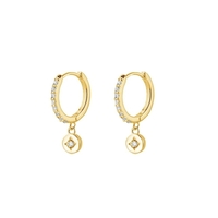 Indulge Yellow Gold Plated Sterling Silver CZ detailed huggie earrings with charm